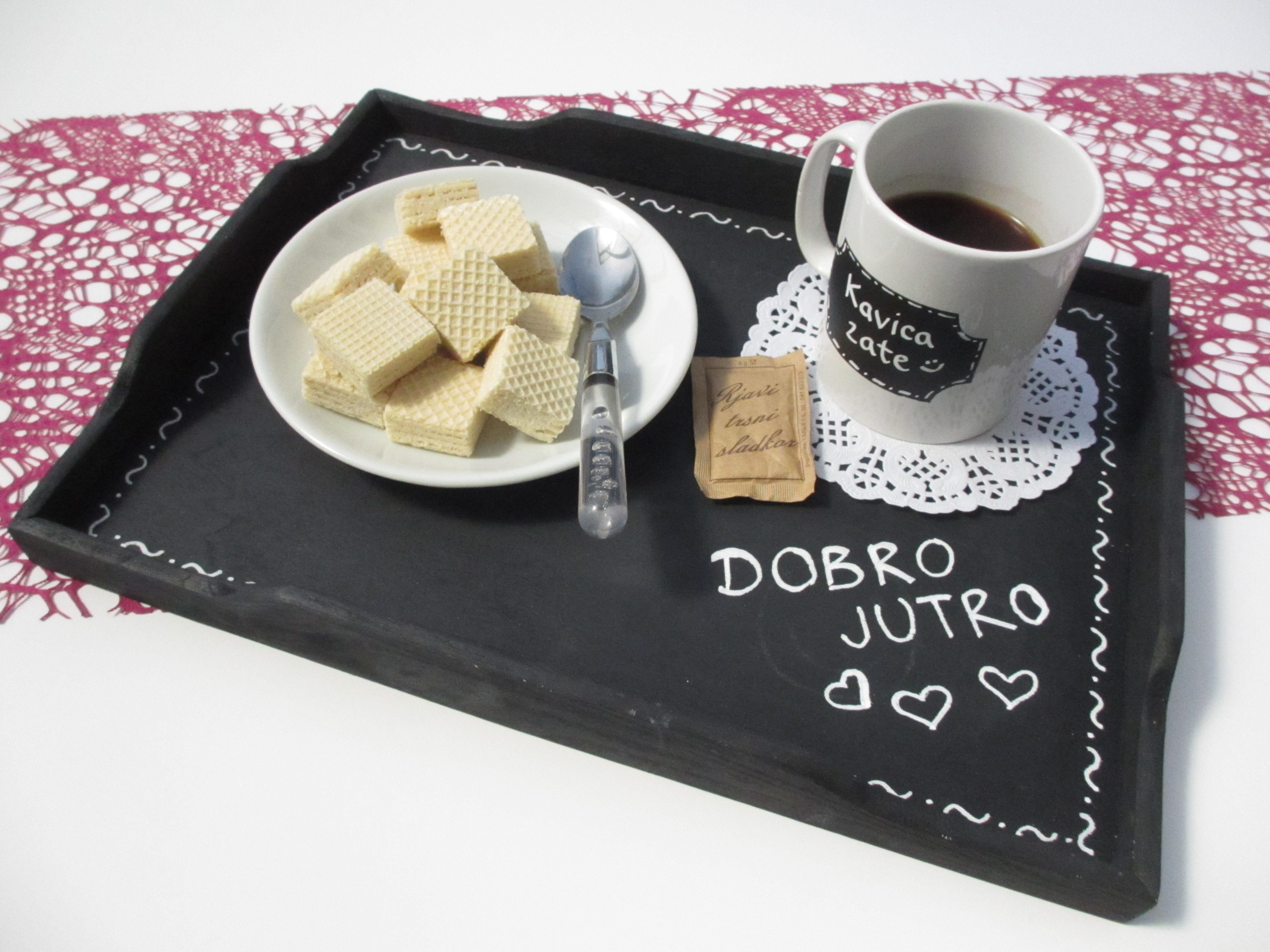 Tako okrašena skodelica je nared, da nanjo prav vsak dan za dobro jutro napišemo novo posvetilo svojim najdražjim. Uporabimo lahko klasično kredo v palčki ali kredo v flomastru.