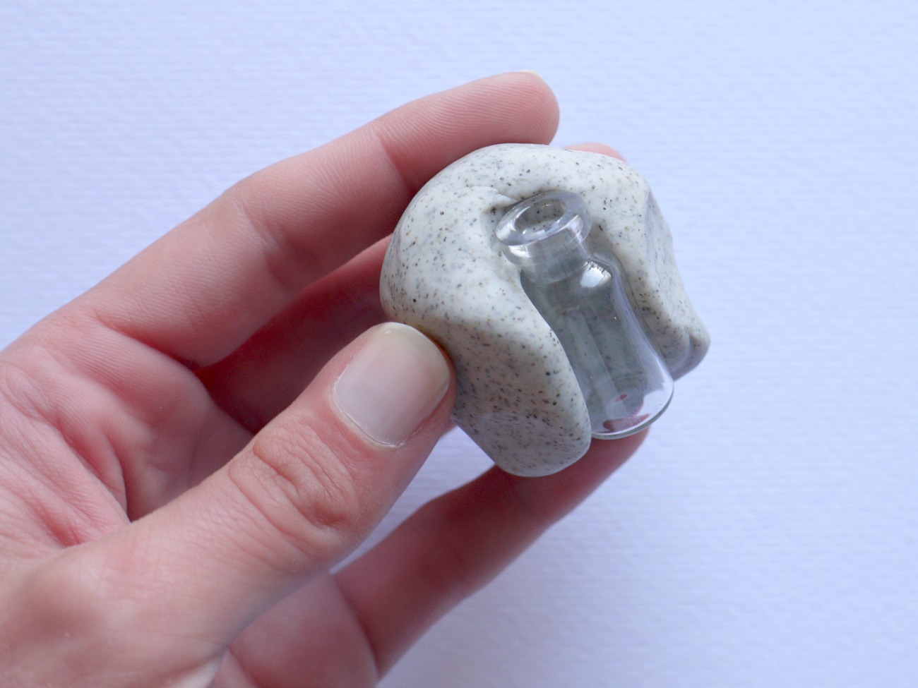 Z maso oblečemo majhno stekleničko in jo na eni strani pritisnemo ob ravno podlago, da jo poravnamo.