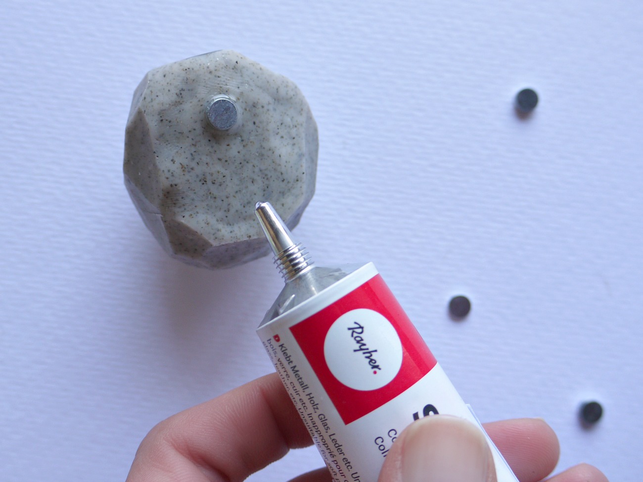 Ko se ohladijo, na večjo ravno površino prilepimo magnetke. Mi smo na vsako vazico prilepili 3 magnetke.
