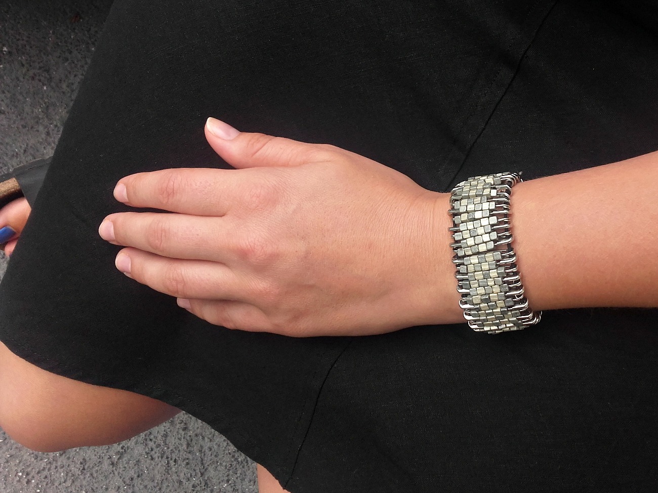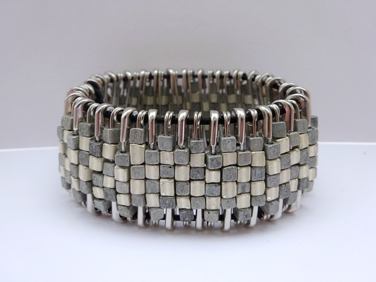 Se spomnite, kako so bile pred leti popularne zapestnice iz sponk? Skupaj z nami osvežite znanje in sestavite zanimivo zapestnico. Mi smo uporabili kockaste perle, lahko pa uporabite katerekoli perlice in si sestavite svoj vzorček.Potrebujemo: