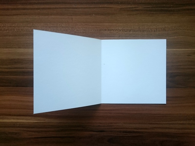 Iz belega fotokartona si pripravimo osnovo za voščilnico kvadratne oblike. Preganjeno osnovo izrežemo z največjo šablono v obliki kroga.