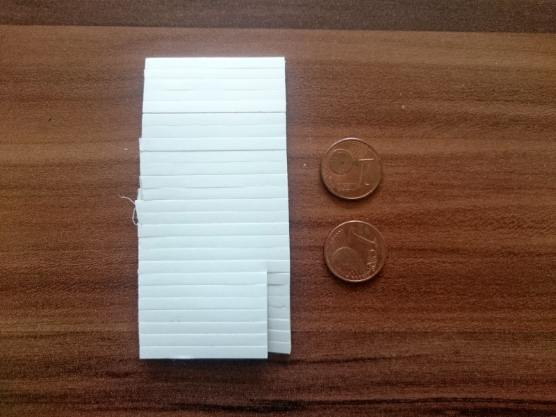 Na izrezane kartončke nalepimo kose penastih samolepilnih blazinic.