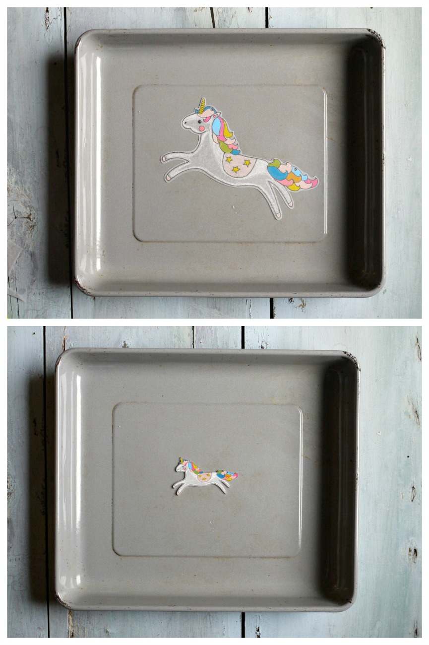 Skrčljivo folijo položimo na pekač ali aluminijasto folijo v pečico, ogreto na 125°C, narisana stran naj gleda gor. Folija se na vročini začne zvijati. Ko je postopek krčenja končan, je folija poravnana in odebeljena.