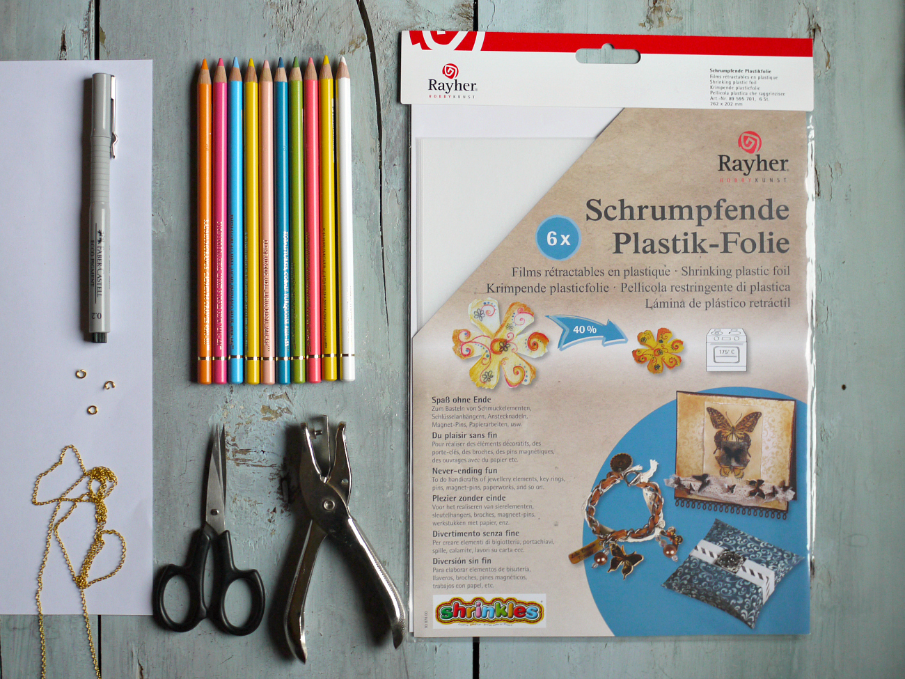 Iz skrčljive folije lahko ustvarimo obeske za verižico, broške, prstane ...Potrebujemo: