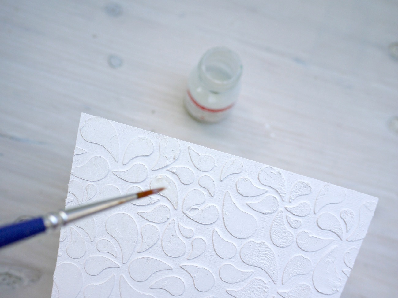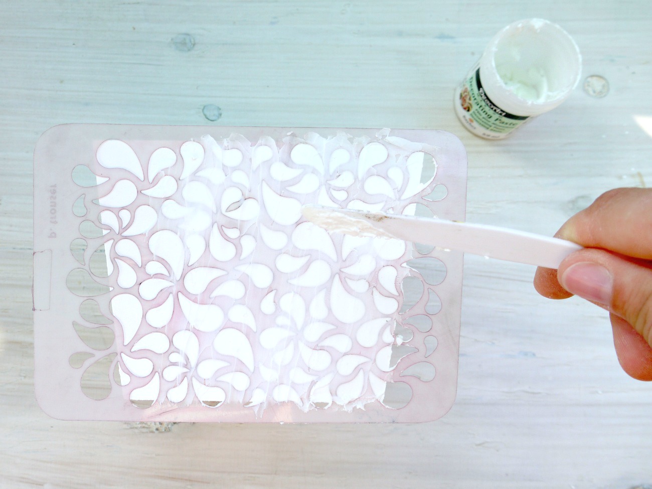Šablono odstranimo in počakamo, da se dekorativna pasta posuši.