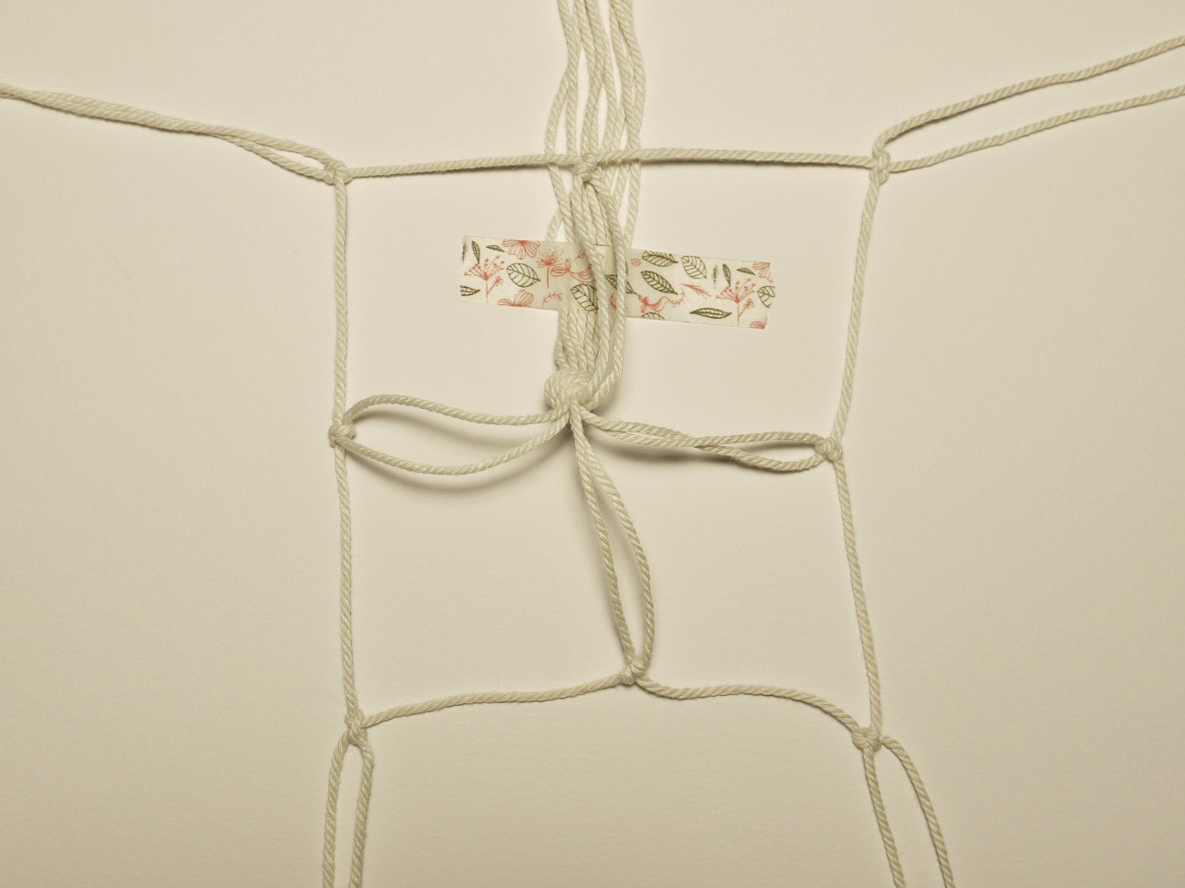 3. Iniziamo annodando, legando due e due fili della stessa lunghezza in un nodo e creando così un quadrato.