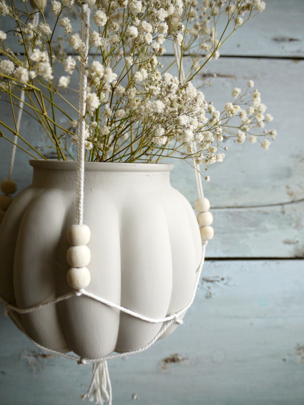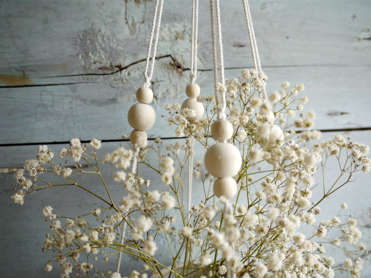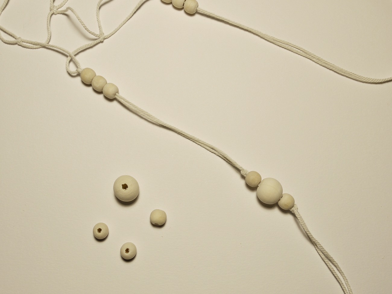 5. Aggiungi perline di legno a tutte le coppie di fili uniti da un nodo.