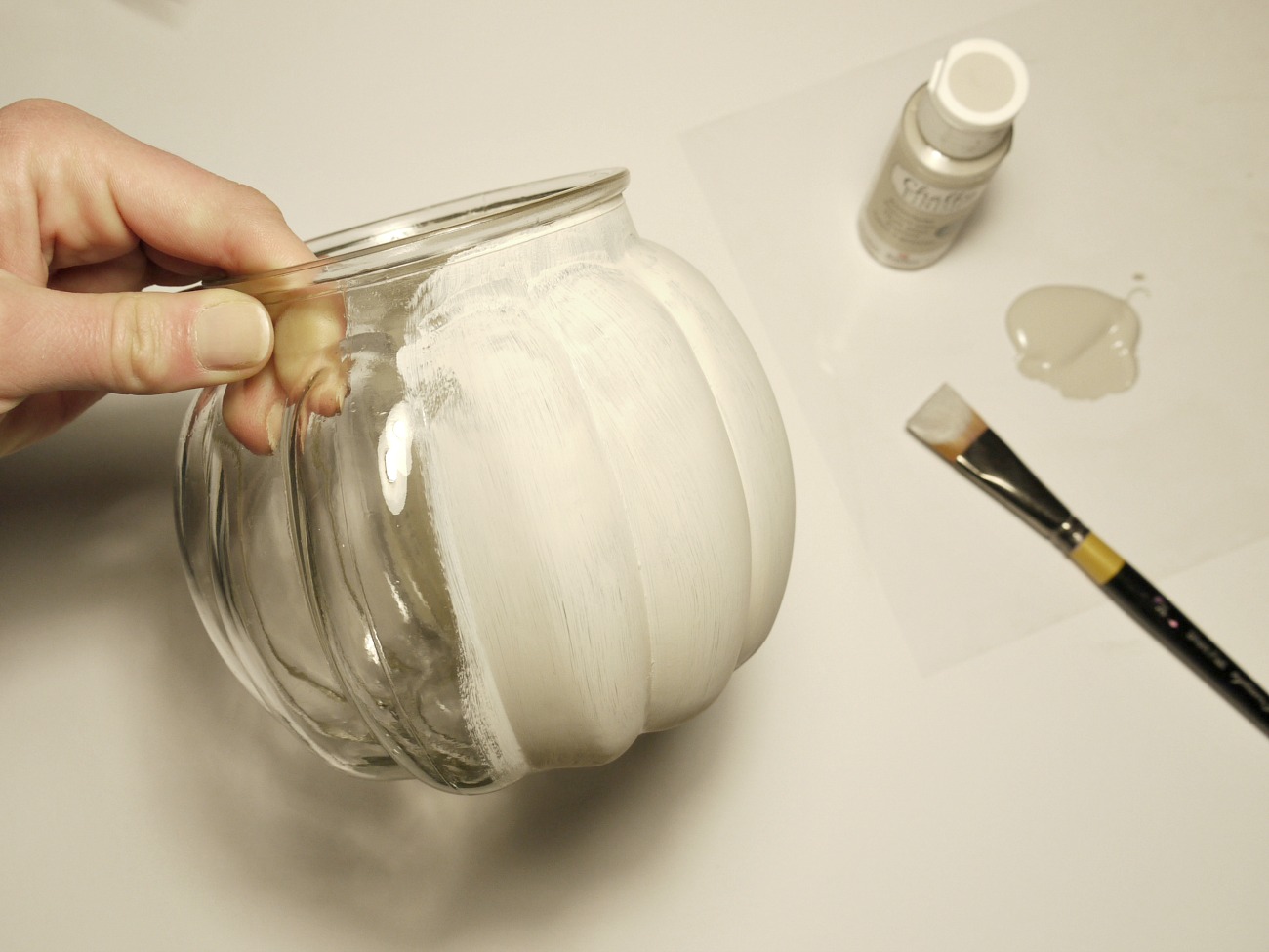 8. Dipingiamo il vaso con colori per vetro. Quando la vernice è asciutta, mettiamo il vaso nel forno per indurire il colore.